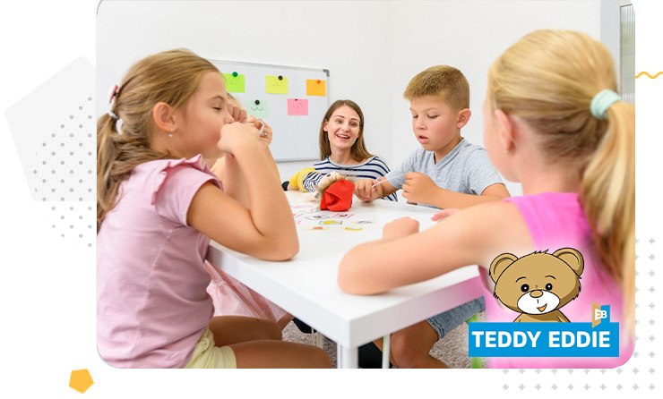 Angielski dla najmłodszych przez zabawę i przygodę. Teddy Eddie to licencjonowany program nauczania języka angielskiego dla dzieci w wieku 2–7 lat, łączący naukę z zabawą. Dzięki grom, piosenkom i historyjkom maluchy naturalnie zanurzają się w języku i chłoną go całym sobą.